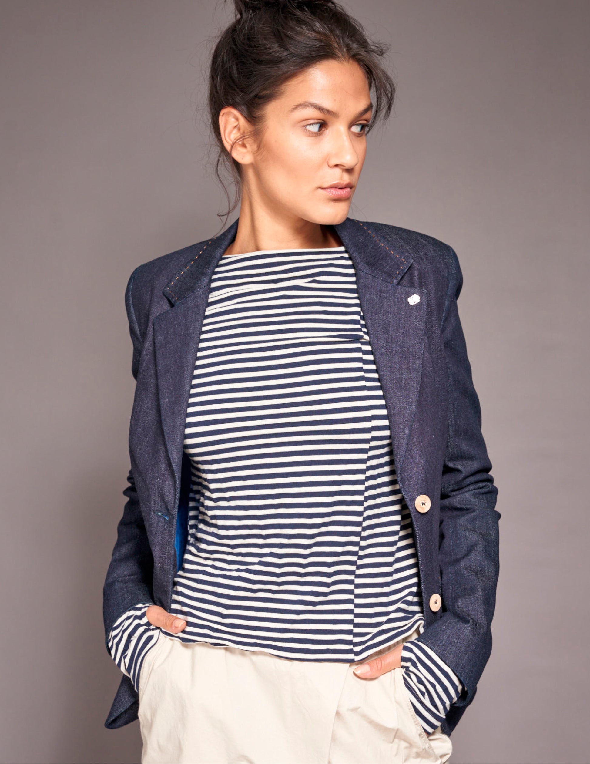 Main material: Stripe Knit: 38% Lyocell Tencel® 48% Organic Cotton, 10% Seacell, 4% EA Gots certified®.